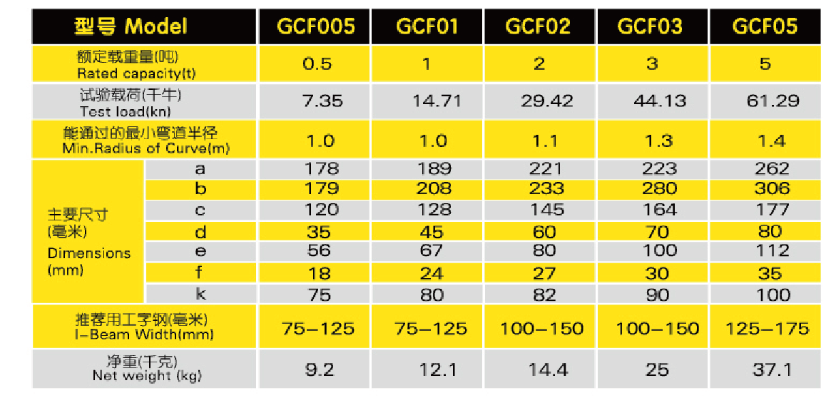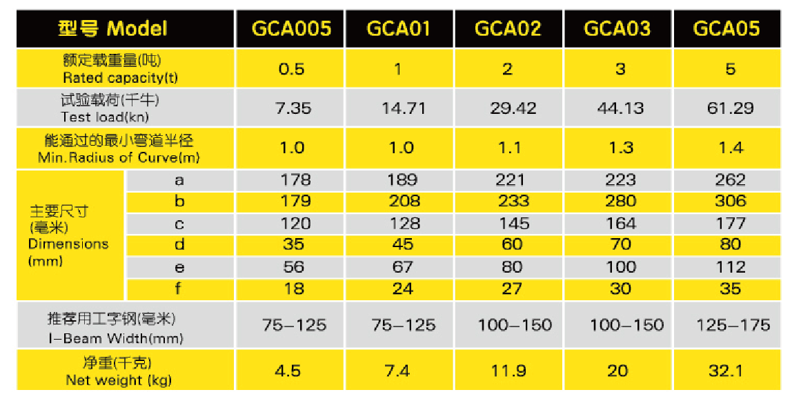 能自如地行走于工字钢轨的下翼椽上,而且车轮轮缘间距可以按工字钢轨道宽度要求调整。