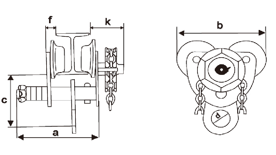 手拉单轨小车以手链驱动,手推单轨小车以手推吊重物驱动。
